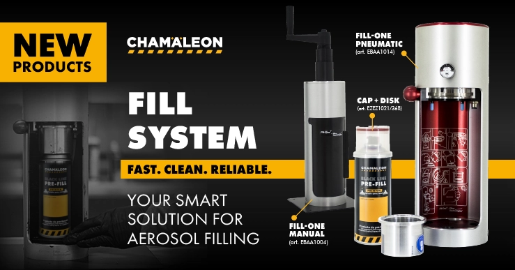 All existing Chamäleon Pre-Fill products – including Premium, Standard, and 2K-to-1K Converter aerosols – are fully compatible with these machines. Just make sure to use the new cap, Art. EZEZ1021/368 when filling.